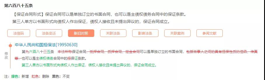 《民法典》第685條來源于《擔保法》第13條關于保證合同訂立的規定。與該條相比,本條除強調書面形式外,還增加了兩方面的內容:一是增加了保證合同也可以是主債權債務合同中的保證條款的內容;二是在《最高人民法院關于適用<中華人民共和國擔保法>若干問題的解釋》第22條第1款的基礎上規定了第三人單方以書面形式向債權人作出保證,債權人接收且未提出異議的,保證合同成立的內容。