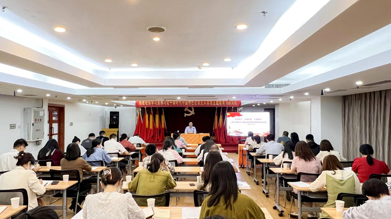 為深入推進學習貫徹習近平新時代中國特色社會主義思想主題教育走深走實,5月23日,福建輕紡黨委委員、副總經理陳國樑以《全面學習、全面把握、全面貫徹以新氣象新作為推動高質量發展取得新成效》為題,為所在支部黨員、部分在榕企業黨員和團員青年代表等共50人講授了一堂生動的黨課。