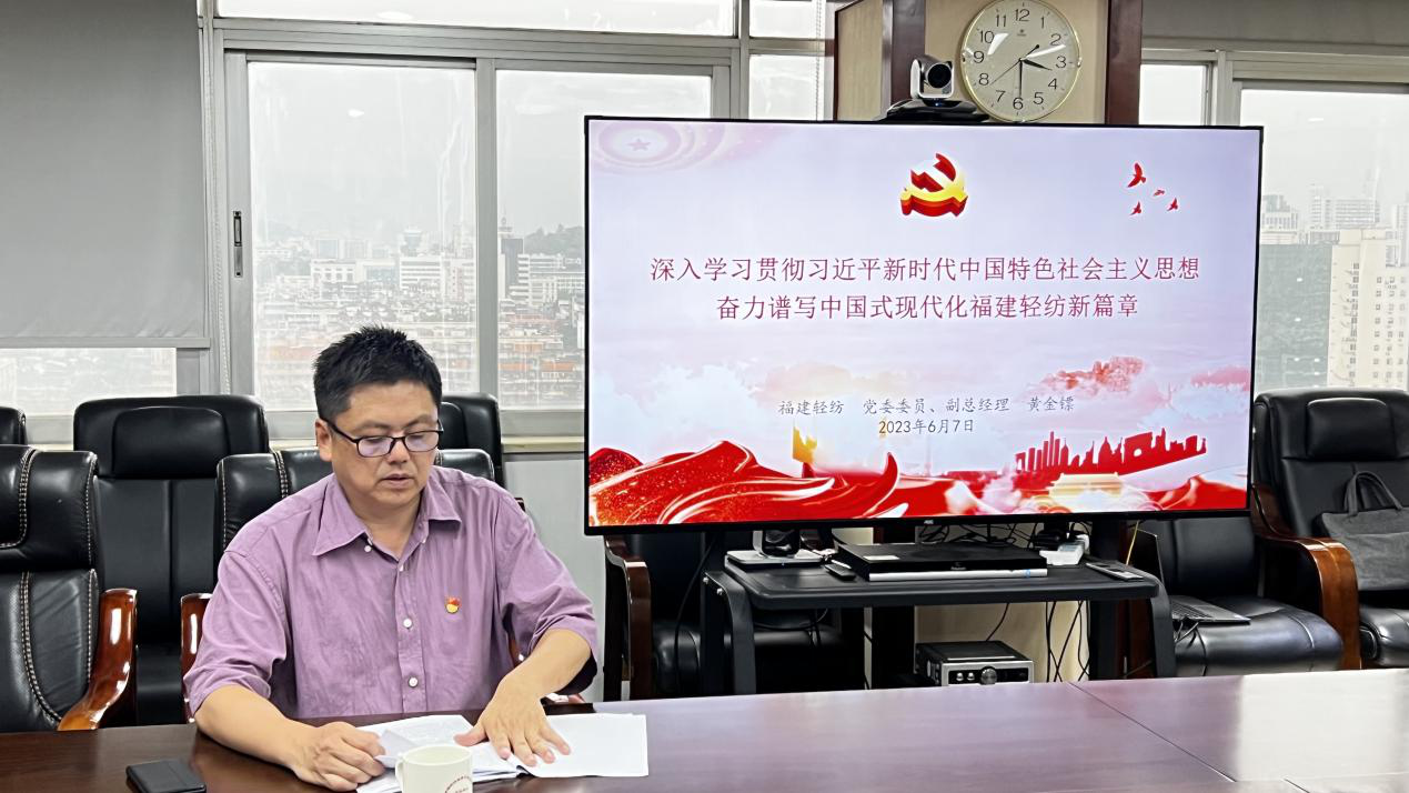 6月7日下午,福建輕紡黨委委員、副總經理黃金鏢以“深入學習貫徹習近平新時代中國特色社會主義思想,推進福建輕紡高質量發展,為奮力譜寫中國式現代化福建篇章貢獻輕紡力量”為主題,從“深化學、內化悟、轉化干”三個維度,為機關第五支部全體黨員上了一堂生動又深刻的主題教育專題黨課。
