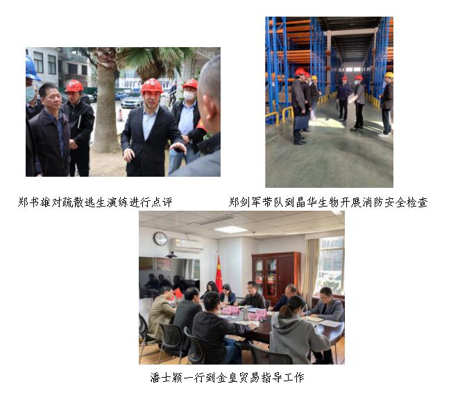 一是四下基層大督查。福建輕紡高度重視相關工作,多次召開會議,持續深入學習貫徹落實習近平總書記關于安全生產和消防工作的重要指示批示精神,全面構建“黨政同責、一崗雙責、齊抓共管、失職追責”和“三管三必須”的消防安全防控體系。領導干部弘揚“四下基層”優良作風,重心下移,多次到基層督導檢查工作。黨委副書記、副董事長、總經理鄭書雄帶隊觀摩金皇物業疏散逃生演練并對其存在的不足之處提出具體意見;黨委委員、總會計師鄭劍軍帶隊到晶華生物開展消防安全檢查及生產經營調研工作;黨委委員、紀委書記、監察專員潘士穎一行到金皇貿易針對金皇大廈設施設備老化的安全隱患等問題交流解決思路。