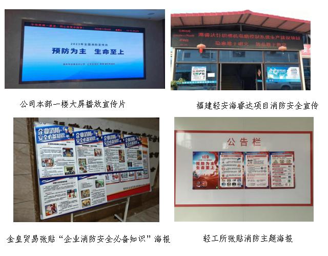 三是消防安全齊“亮屏”。充分發揮顯示屏送達率高、覆蓋面廣、時間不受限的優勢,公司本部及各權屬企業通過連續滾動播放消防宣傳標語、播放消防安全宣傳警示片、懸掛消防安全橫幅、張貼海報等方式,讓廣大員工上好消防知識“流動課堂”,在潛移默化中學習消防安全知識。