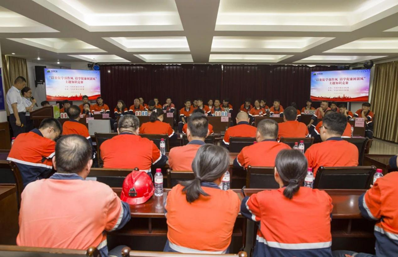 “七一”前夕,馬坑礦業大會議室內氣氛熱烈,來自生產一線和機關各部室的代表隊正在這里展開一場激烈的主題知識競賽。競賽圍繞中央八項規定精神、《中國共產黨紀律處分條例》,以及公司“十二條禁令”等內容展開。在必答環節,選手們個個胸有成竹,對答如流;而在搶答環節,大家踴躍爭先、互不相讓。最精彩的莫過于風險題環節,該環節的答題難度明顯更高,但選手們并不怯場,在爭得機會后從容作答。