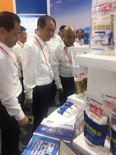 展會期間,省委常委、常務副省長張志南,副省長鄭新聰,省國資委黨委書記、主任邵玉龍,寧德市委書記郭錫文等領導蒞臨福建輕紡展臺視察參觀,福建輕紡黃文定總經理、省鹽業集團公司徐宗明董事長向各位領導介紹了企業改革創新發展所取得的成效,并著重介紹了省鹽業集團公司新推出的“閩鹽”牌系列產品。
