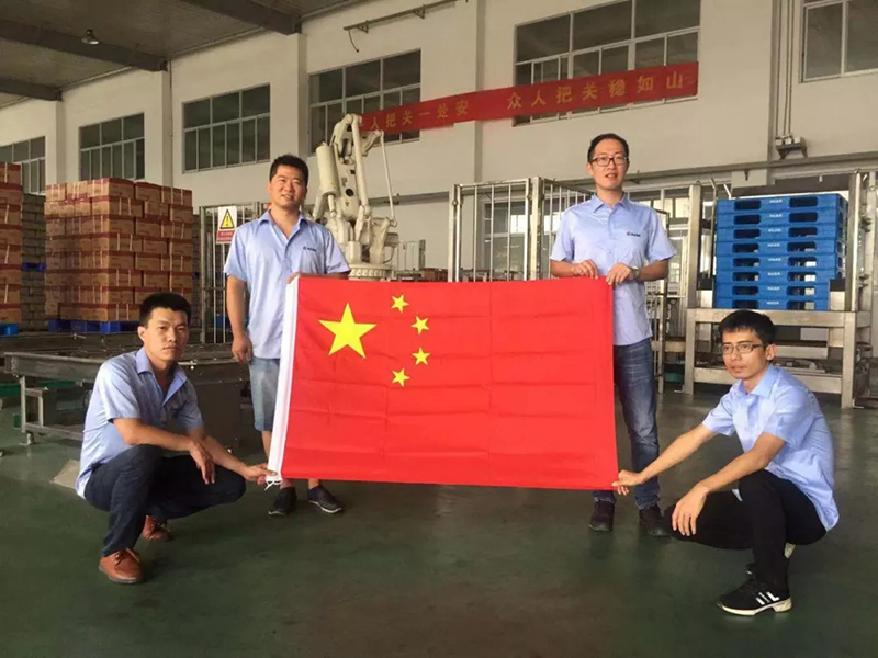 圖為福建省泉州晶海輕化有限公司員工與國旗合影
