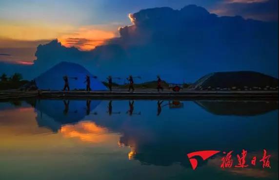 (福建莆田鹽場鹽工收完鹽后歸家)