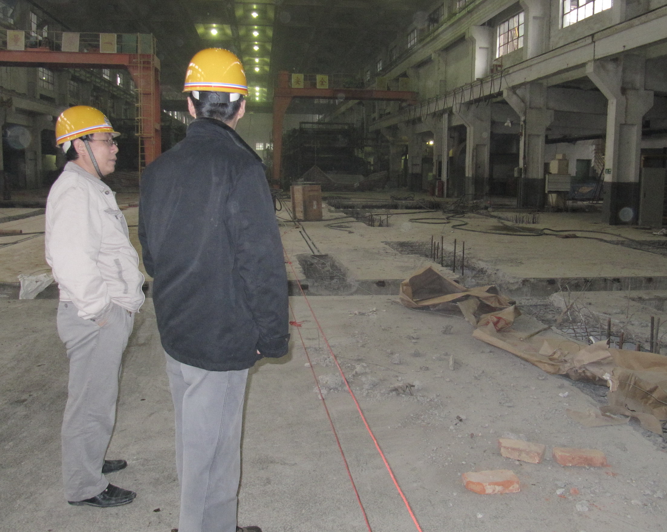 上圖為檢查組在二抄車間技改現(xiàn)場檢查