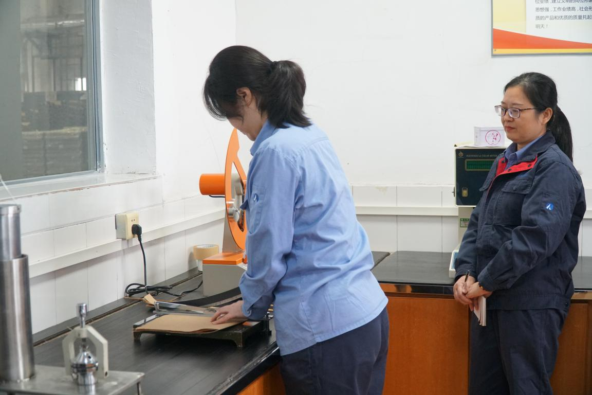 競(jìng)賽由理論知識(shí)考試和實(shí)踐操作考核兩部分組成。在理論知識(shí)考試中脫穎而出的十六名檢驗(yàn)工人進(jìn)入實(shí)操競(jìng)賽環(huán)節(jié),實(shí)踐操作考核包括橫幅定量、縱向撕裂度及縱橫向抗張強(qiáng)度等內(nèi)容。