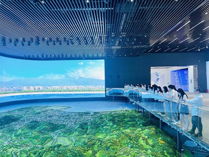 通過現場講解、觀看視頻和沙盤等形式,多方位了解到濱海新城的建設是福州市堅持“3820”戰略思想精髓加快建設現代化國際城市的重要舉措。濱海新城規劃展示館的建設既是對新城建設以來完整全面的回顧總結,也是對十四五期間新城發展的展望。