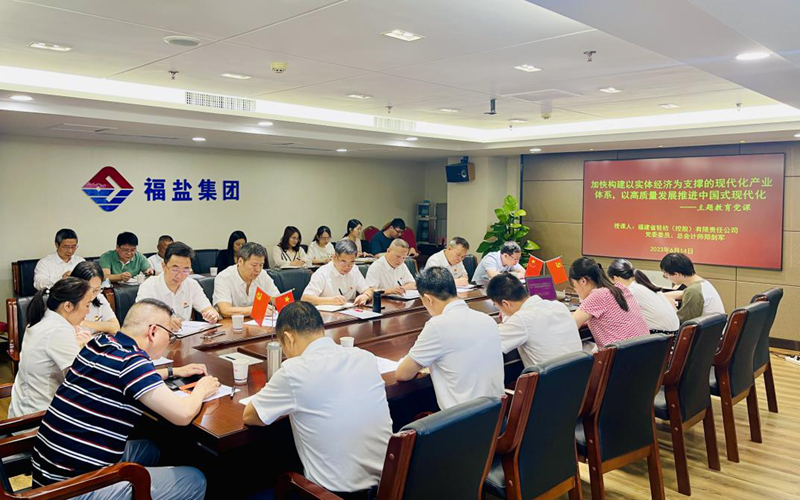 為深入開展學習貫徹習近平新時代中國特色社會主義思想主題教育,全面貫徹落實黨的二十大精神,把企業發展目標自覺融入國家高質量發展和完善現代化產業體系等重大戰略布局,6月14日,福建輕紡黨委委員、總會計師鄭劍軍以“加快構建以實體經濟為支撐的現代化產業體系,以高質量發展推動中國式現代化”為主題,為福建輕紡機關第四支部、省鹽業公司領導班子及機關第一支部黨員講授專題黨課。