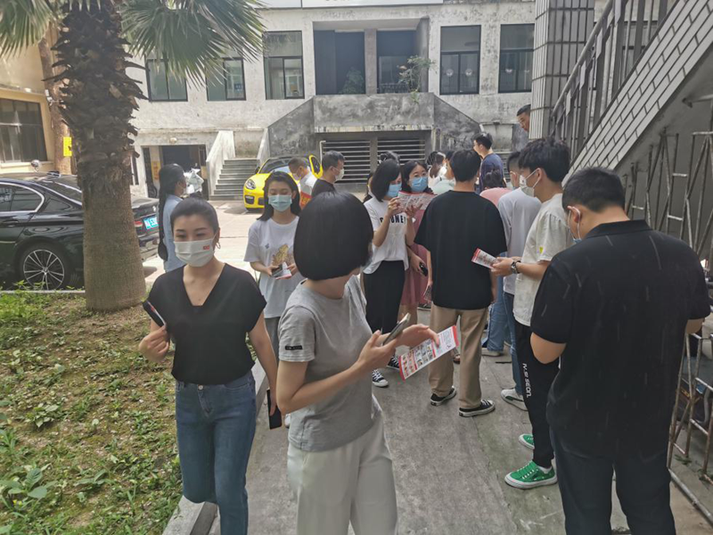 九點十分,演習(xí)人員有序撤出金皇大廈并在北面空地集中,金皇物業(yè)演習(xí)工作人員給在場所有參演人員分發(fā)了安全月宣傳手冊,并邀請消防維保人員對在場所有演習(xí)人員進(jìn)行了消防知識普及。