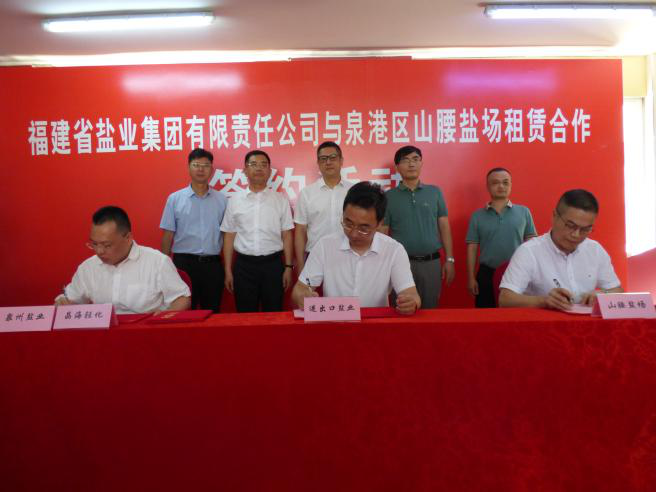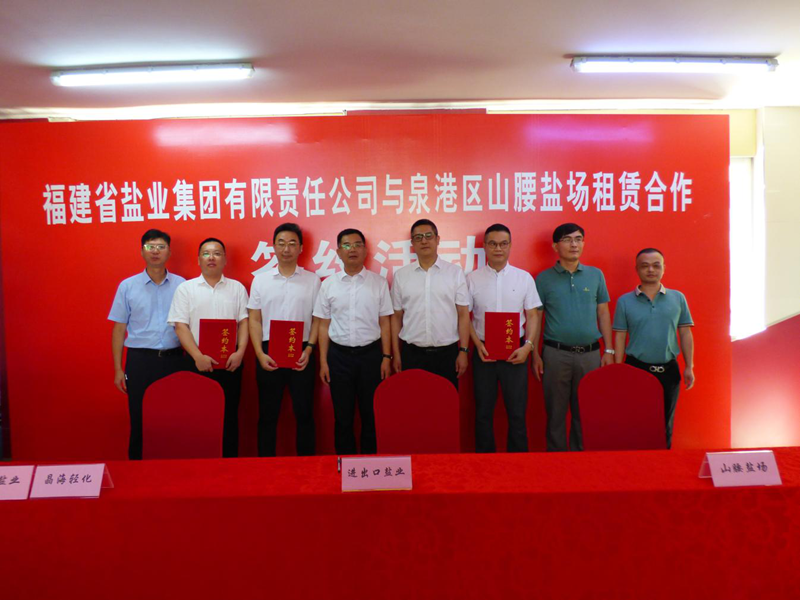 7月13日上午,福鹽集團(tuán)與泉州市泉港區(qū)山腰鹽場(chǎng)在福鹽集團(tuán)權(quán)屬企業(yè)晶海輕化公司舉行經(jīng)營(yíng)合作簽約儀式。泉港區(qū)常務(wù)副區(qū)長(zhǎng)陳劍峰、福鹽集團(tuán)黨委副書(shū)記、總經(jīng)理莊燦陽(yáng)到會(huì)并致辭。山腰街道黨工委等相關(guān)簽約單位的領(lǐng)導(dǎo)出席簽約儀式。
