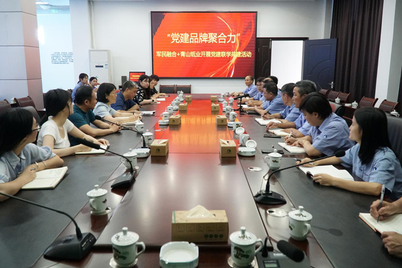 隨后,召開黨建品牌聯學共建交流座談會。會上,雙方就企業發展歷程、現階段生產經營管理、黨建工作與生產經營管理深度融合等方面進行了全面深入的交流。青山紙業黨委副書記、董事會秘書潘其星重點介紹了青山紙業在特色黨建品牌建設的先進經驗。
