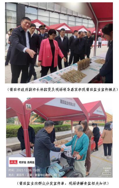 莆田鹽業(yè)堅(jiān)持扛牢地方國(guó)企政治責(zé)任,堅(jiān)持樹(shù)牢食品安全主體責(zé)任意識(shí)、筑牢食鹽供應(yīng)安全防線。作為食品生產(chǎn)經(jīng)營(yíng)企業(yè)代表,莆田鹽業(yè)參加了莆田市2023年食品安全宣傳周啟動(dòng)儀式,積極參與食品安全誠(chéng)信承諾,開(kāi)展科學(xué)食用碘鹽宣傳。