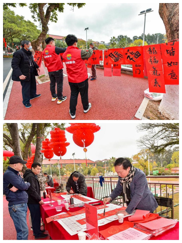 此外,本次年貨節海峽融合還爭取到省文聯的支持,邀請了6位中國書法家協會知名書法家現場寫福字撰春聯,為官兵送上龍年新春的祝福。書法老師紛紛揮毫潑墨,用筆蒼勁有力,一張張筆酣墨飽的“福”字和一對對寓意吉祥的春聯,表達著迎春納福的祝愿,書法專區前人頭攢動、熱鬧不已,千余幅悠然逸趣的書畫作品免費贈送給年貨節現場的官兵家屬。