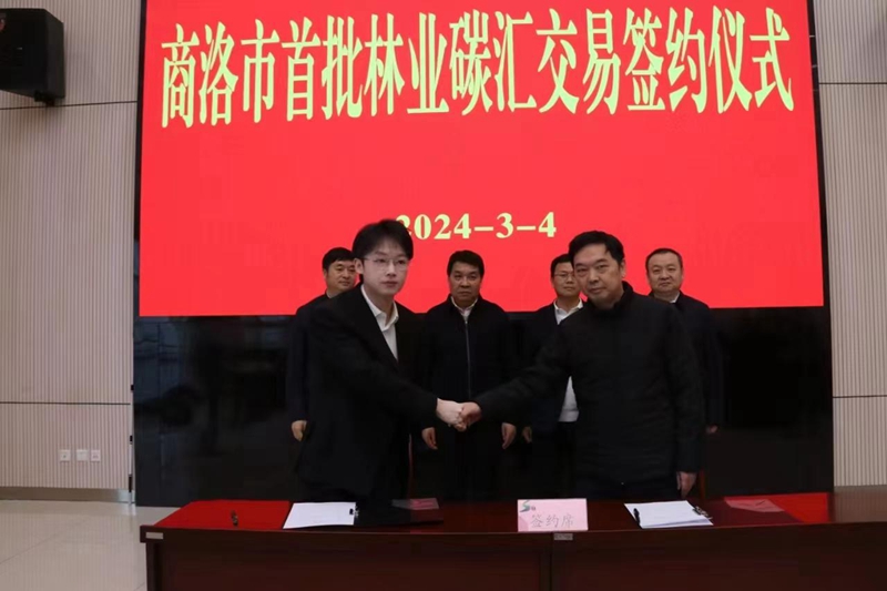 3月4日,陜西省商洛市首批林業碳匯交易簽約儀式順利舉行,商洛市交投公司與我司全資子公司中碳生態正式簽約,交易二氧化碳減排量10萬噸,總資金400余萬元。商洛市政府副市長璩澤濤出席儀式并講話,市政府副秘書長陳昌兵主持簽約儀式。