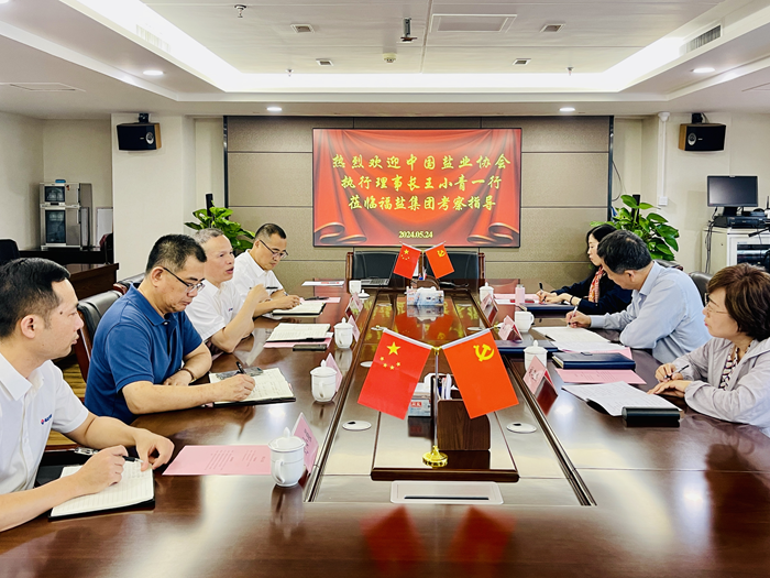 2024年5月24日,中國鹽業協會黨支部書記、執行理事長王小青一行到福鹽集團調研指導,實地了解福鹽集團的生產經營和企業發展情況。福鹽集團黨委書記、董事長林建平,黨委副書記、總經理莊燦陽等陪同調研。雙方就產業規模化、技術創新、新規制訂等焦點問題進行深入探討。此次座談加強了雙方的聯系溝通,通過協會的橋梁紐帶作用,清晰快捷地反映企業的需求和訴求,助力協調解決發展中的痛點難點問題,促進福鹽集團高質量發展。