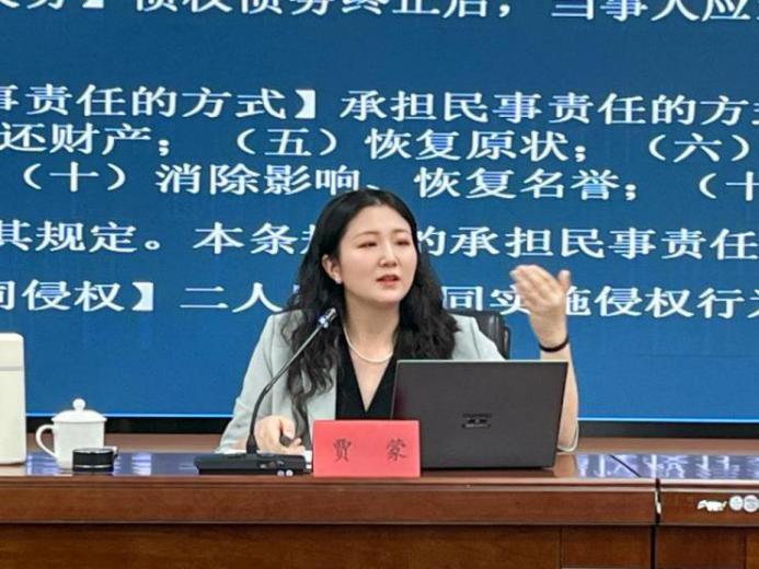 啟動會后,公司邀請福州融合外聘法律顧問賈蒙律師分享《民法典》典型案例及新《公司法》宣講。賈蒙律師結合公司主營業務與自身實務經驗,從副食品購銷合同、保密義務等經典案例分享、公司法修訂總覽、公司法修訂亮點和公司章程修訂等四個方面重點普及《民法典》和新《公司法》的相關法律知識,內容詳實,事例生動,讓全體員工更加深入了解違約金、保密、食品安全等法律規定,進一步增強干部員工法治思維、合規意識與法律素養,筑牢依法治企根基。