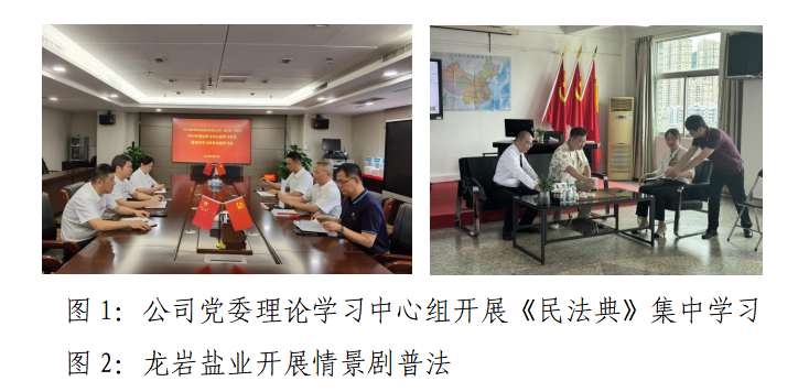 本次普法宣傳活動,公司黨委高度重視,把民法典學習作為黨委理論學習中心組的學習內容和學法重點,全系統上下積極響應,認真組織開展學習、交流研討,采取線上線下相結合的多元化宣傳策略。龍巖鹽業組織開展“合同那點事”情景劇普法,由福建省司法廳、福建省國資委指導推動,福建電視臺綜合頻道“蒲公英在普法”欄目組現場拍攝錄制。各單位通過張貼民法典宣傳海報、發放民法典宣傳手冊等各種宣傳物料,依托互聯網平臺轉發、觀看民法典宣傳視頻等方式,不斷豐富職工學習內容和路徑,全方位、多角度地增加普法趣味性,營造出學習、宣貫《民法典》的濃厚氛圍。