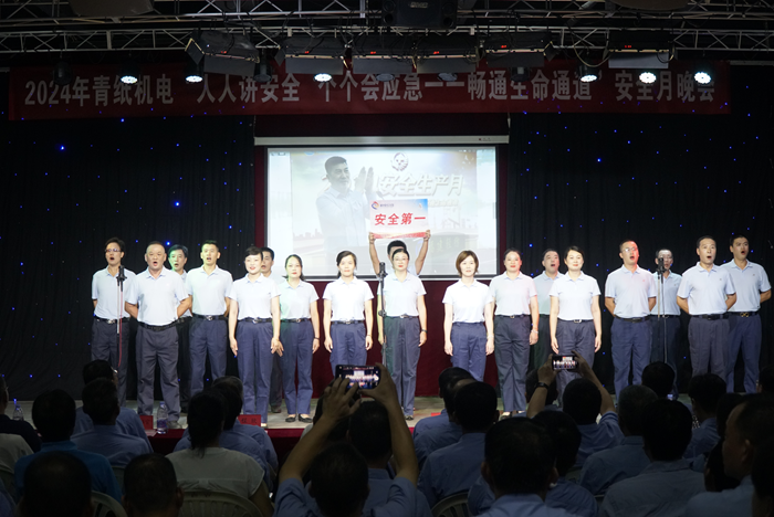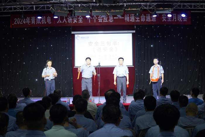在全國第23個安全生產月之際,為進一步落實安全責任,提高安全生產意識,6月25日晚上,青山紙業機電公司舉辦了“人人講安全、個個會應急——暢通生命通道”安全生產文藝晚會。福建輕紡安全檢查組、青山公司黨委副書記、總經理余宗遠等青山公司領導班子成員到場觀看演出。