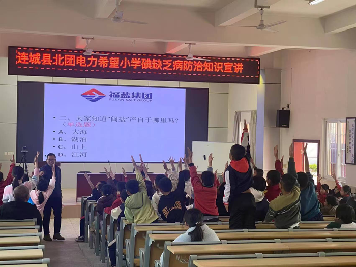 為貫徹落實地方病防治工作要求,持續推進健康行動,鞏固地方病防治成果,同時進一步彰顯福建鹽業國企擔當。從3月起,龍巖鹽業聯合市、縣疾控中心前往各縣(市、區)的30余所鄉鎮中心校,開展為期一個月的碘缺乏病入校監測和防治宣傳。