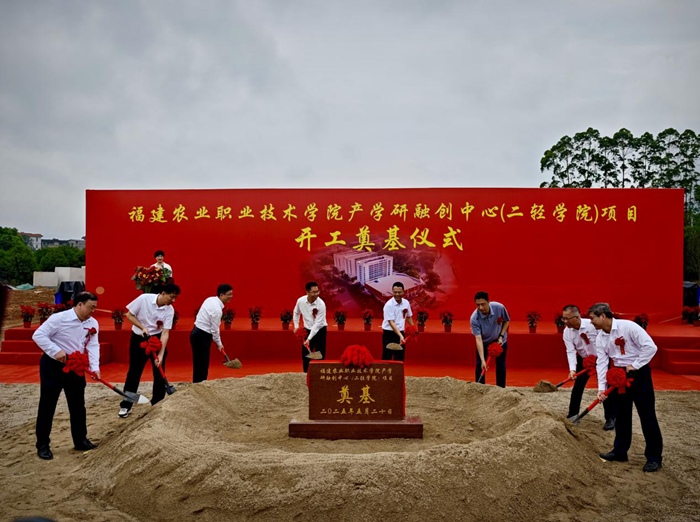 5月20日上午,福建農(nóng)業(yè)職業(yè)技術(shù)學院產(chǎn)學研融創(chuàng)中心(二輕學院)項目奠基儀式隆重舉行。學院黨委書記楊振坦、黨委副書記、院長何東進、福建省建設(shè)投資集團有限責任公司黨委委員、總工程師阮錦發(fā)、福建省建筑輕紡設(shè)計院有限公司副總經(jīng)理王灝等領(lǐng)導(dǎo)一同出席奠基儀式。輕紡設(shè)計院作為該項目的全過程咨詢單位代表,現(xiàn)場致辭發(fā)言。