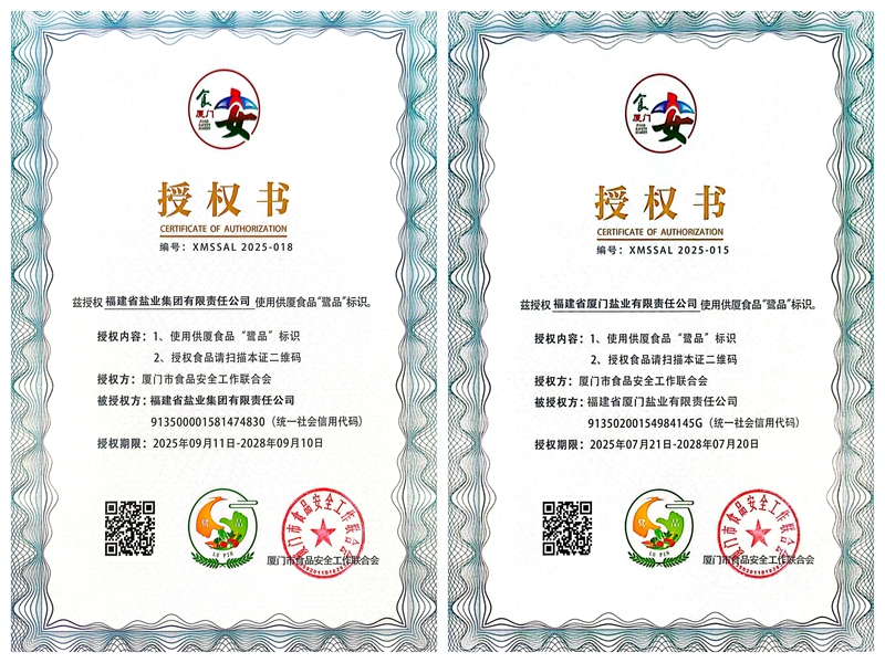 近日,廈門市食品安全宣傳周主題日活動隆重舉行,現場同步舉行廈門市“鷺品”標識認證授牌儀式,福鹽集團及其權屬企業廈門鹽業獲得供廈食品“鷺品”標識正式授牌。
