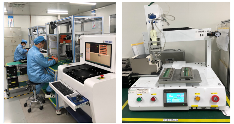 自動(dòng)焊接、AOI鏡檢生產(chǎn)線以及自動(dòng)鎖螺絲設(shè)備覆蓋范圍包含3G以下SFP帶DDMI模塊及不帶DDMI模塊。自動(dòng)焊接UPH達(dá)150pcs/Hr,較人工生產(chǎn)效率提升約2.1倍,且2個(gè)工序可1人完成操作,每條線節(jié)省人工1人,送檢合格率達(dá)100%,系統(tǒng)內(nèi)自動(dòng)保存測(cè)試數(shù)據(jù),保證數(shù)據(jù)的可追溯性。自動(dòng)焊接具有破錫功能,采用定制烙鐵頭,有效減少錫渣的產(chǎn)生,保證PCBA板面清潔度,較人工焊接焊點(diǎn)一致性好,此工藝應(yīng)用在同行業(yè)中樹(shù)立了標(biāo)桿。自動(dòng)鎖螺絲UPH達(dá)340pcs/Hr,較人工生產(chǎn)效率提升約1.8倍,極大降低了員工疲勞強(qiáng)度。夾具設(shè)計(jì)采用雙工位設(shè)計(jì),且?jiàn)A具可供后工序模塊清洗共用,減少工裝取放時(shí)間。自動(dòng)鎖螺絲設(shè)備采用全伺服+滾珠絲桿的配置,螺絲供料器使用光電傳感器感應(yīng),保證螺絲供料可靠性,其定位重復(fù)精度達(dá)到±0.01mm,此工藝效益提升明顯,較同行業(yè)相關(guān)工藝處于領(lǐng)先水平。