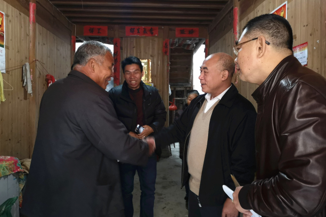 黃文定總經理一行直接到貧困戶家慰問,給梅渡村和下坑村的18家貧困戶送去慰問金和慰問品,并對2個村扶貧工作情況進行調研,分別向當地縣、鄉領導和村干部了解產業扶貧項目的規劃及當地群眾生活情況。